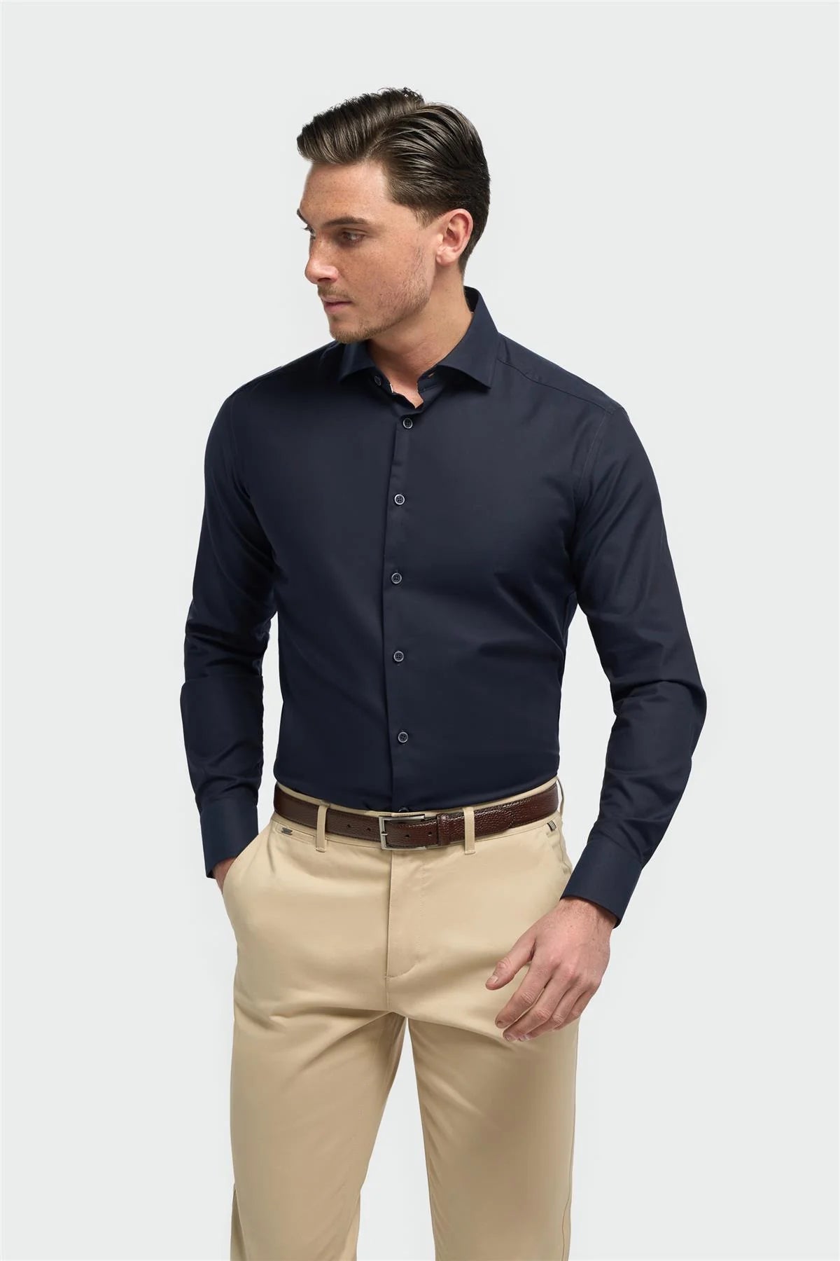 Laten we vrij breed beginnen; wat verstaan we nou eigenlijk onder “overhemden”? Wat bedoelen we hier precies mee? Een overhemd is een kledingstuk met lange of korte mouwen, meestal gemaakt van geweven stof zoals katoen, linnen of synthetische materialen. Het overhemd heeft een kraag, een knoopsluiting aan de voorkant en een rechte of afgeronde zoom. Oorspronkelijk ontworpen als onderkleding, heeft het overhemd zich in de loop der tijd ontwikkeld tot een onmisbaar onderdeel van zowel formele als informele kleding. Overhemden zijn er in diverse uitvoeringen, zoals het klassieke overhemd met een enkele borstzak, het formele overhemd met Franse manchetten en het casual overhemd met button-down kraag. Hieronder zie je een van de meest populaire overhemden van Castleson, de CASTLESON Premium Bamboe Overhemd - Kreukvrij & Luchtig.
