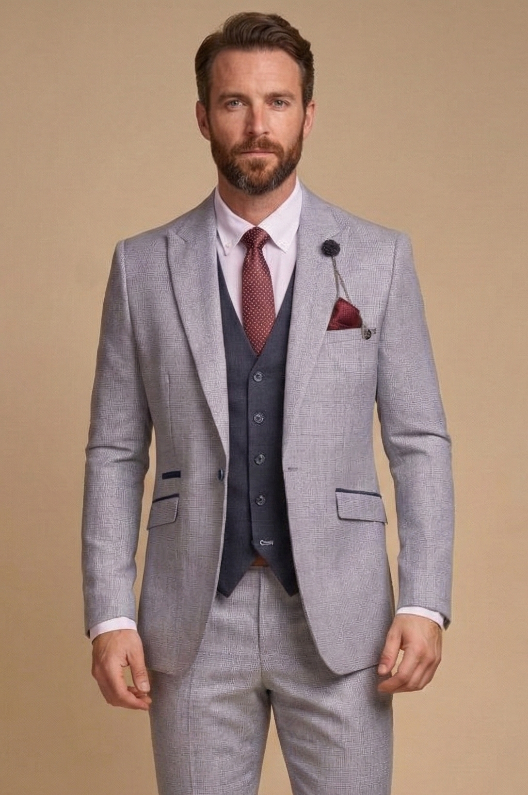 Liever het hele pak in 1 kleur? Bekijk dan hier het herenpak Caridi Sky.