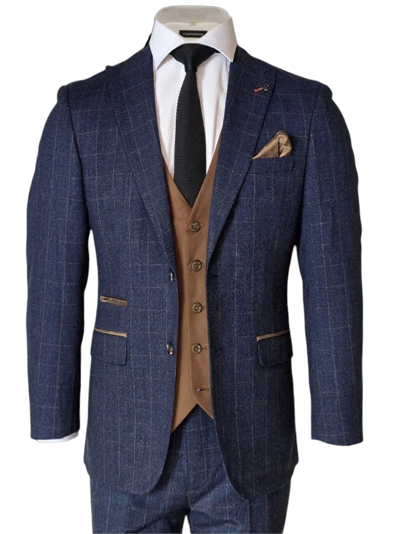 CASTLESON Admiral – Driedelig Herenpak Check Navy/Tan Mix & Match
