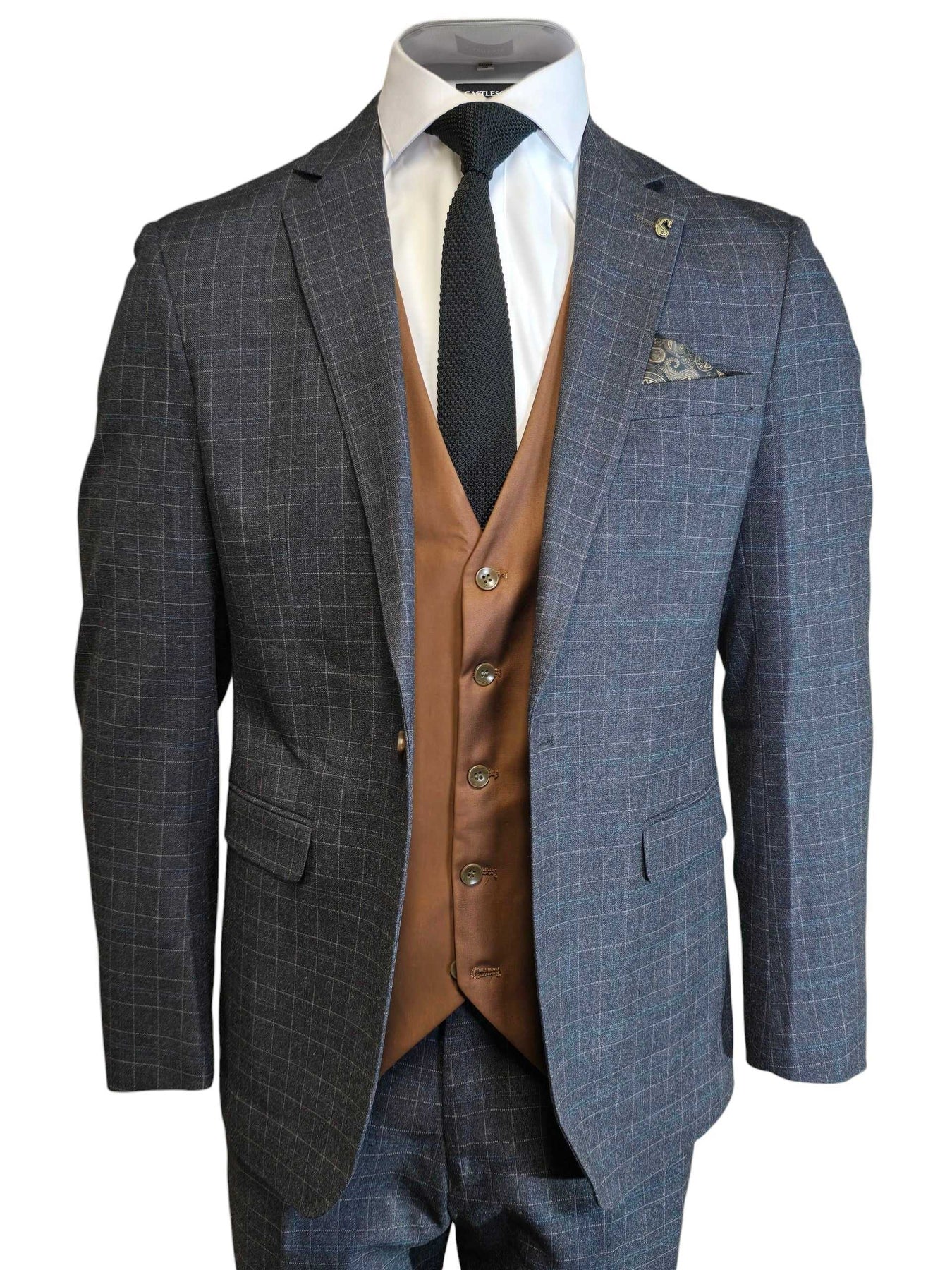 CASTLESON Phantom - Driedelig Herenpak Grey Mix & Match Bradley tan