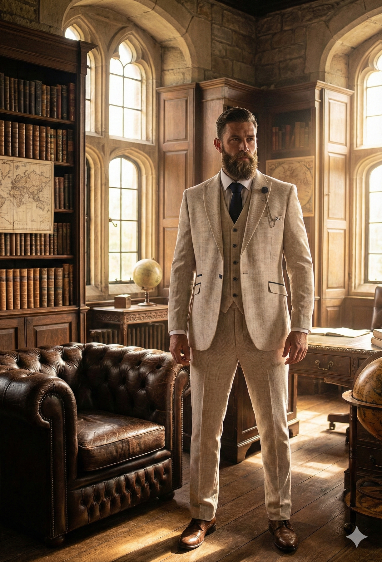 Hoe combineer je een beige herenpak?