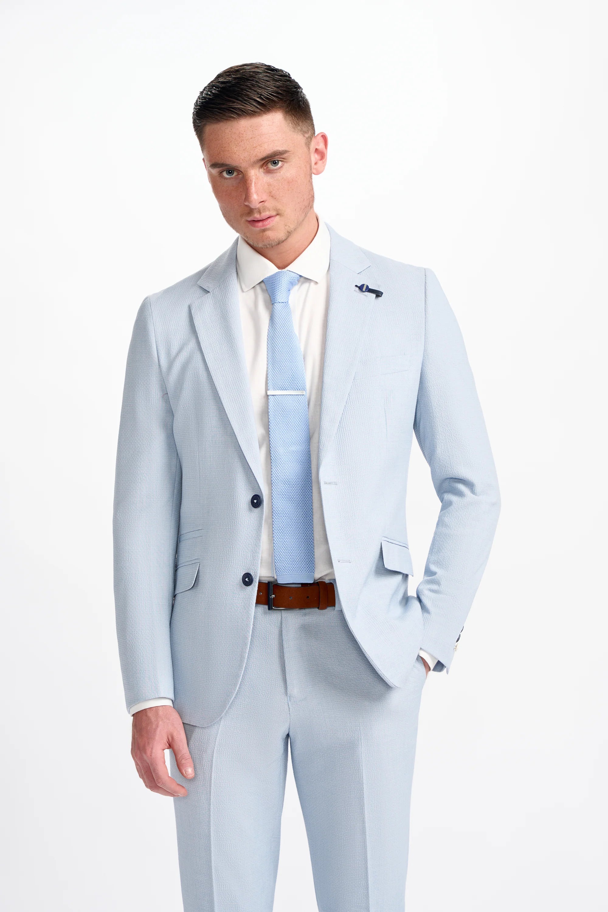 Ljusblått: Ljusblått kan skapa en svalkande effekt och förknippas ofta med sommarhimmel och hav. Det är ett bra val om du vill ha något annorlunda än de vanliga grå eller beige kostymerna.